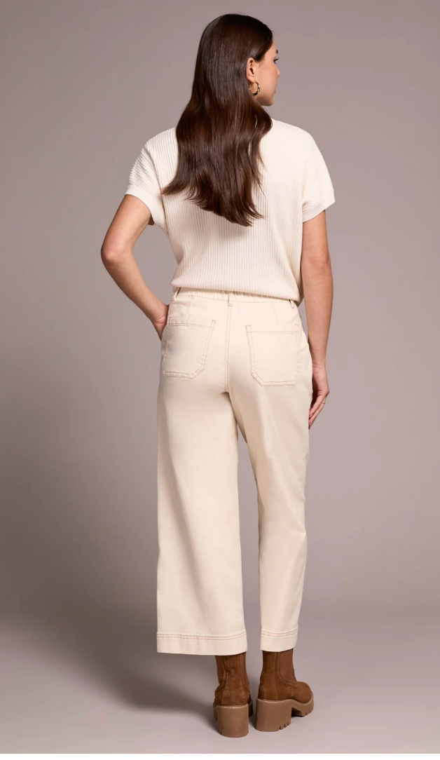 Sophia Curvy Button Fly Wide Leg Crop Jeans- Ecru