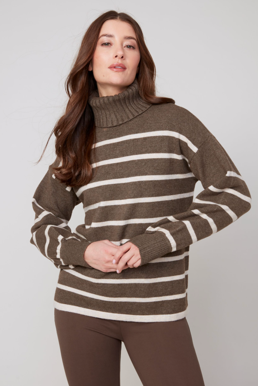 Renuar Knit Striped Sweater in Chocolate