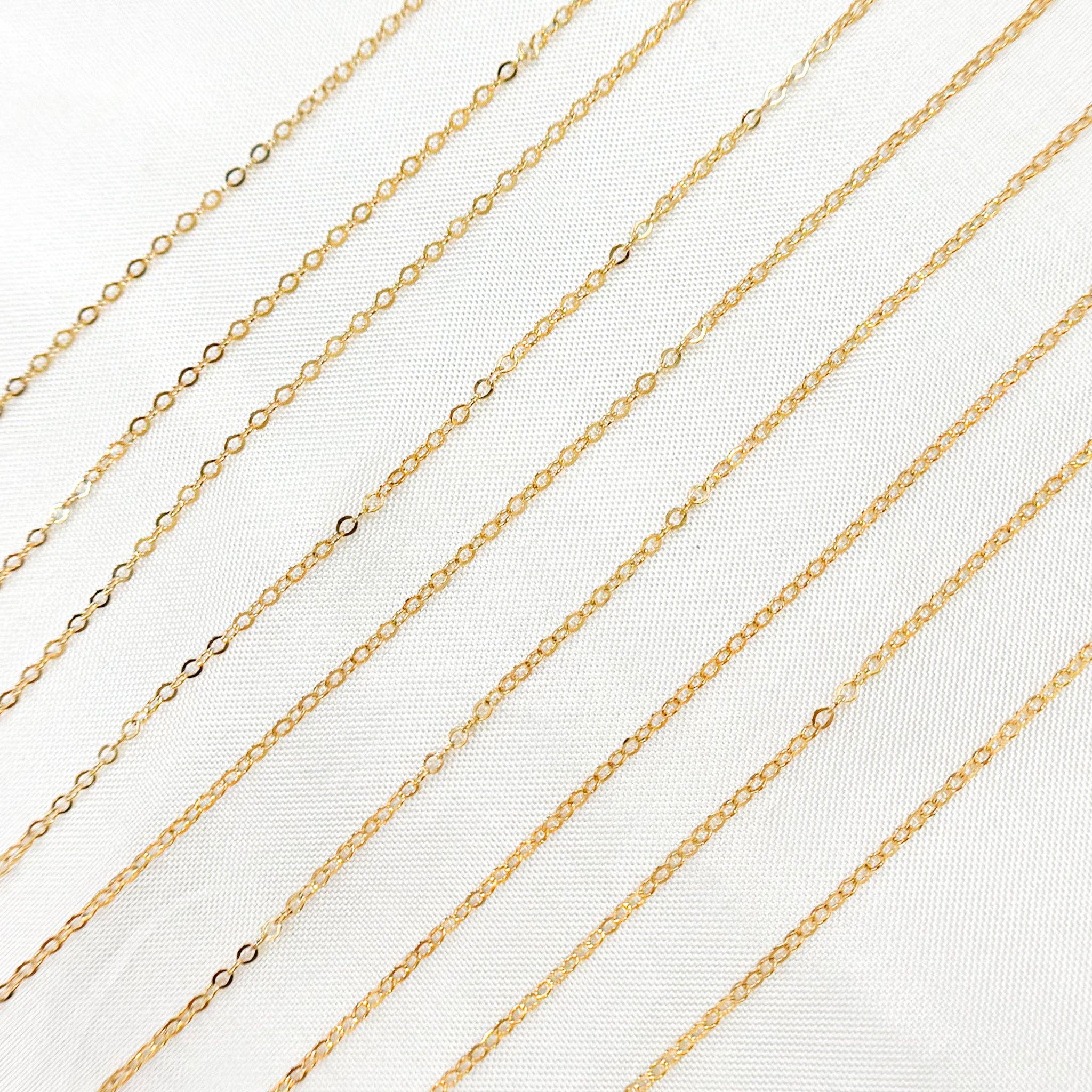 14K Gold-Filled Flat Cable Chain. Link Size: 1.5mm. Sold by Foot.